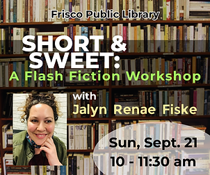 Jalyn will be teaching a free workshop at Frisco Public Library. This time, it'll be about how to find submission calls, how to format your subs, and tips and tricks from the editor's desk on how to get published. ​